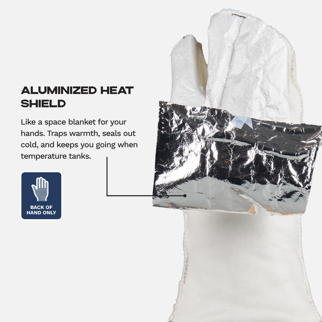 Tip from the Tetons! When removing the gloves, especially during break in, pinch the mitten + index finger to keep the lining in place. It will become easier to take your hand in and out as you break in your split mittens.