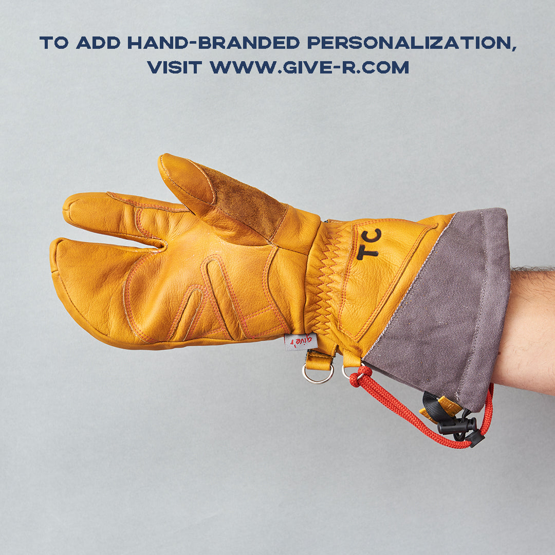 Tip from the Tetons! When removing the gloves, especially during break in, pinch the mitten + index finger to keep the lining in place. It will become easier to take your hand in and out as you break in your split mittens.